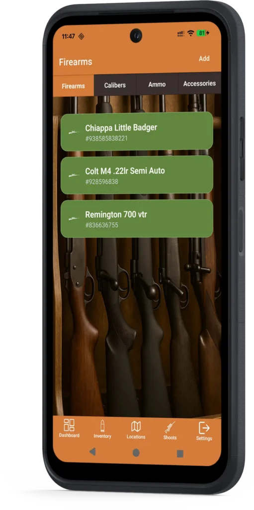 Track the full details of your rifles as well as calibers, maintenance logs, documentation, images, and much more.